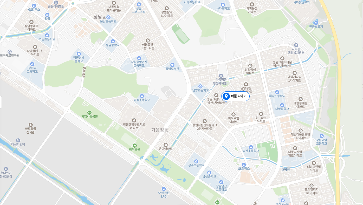 검색을 통해 손쉽게 경남 창원에 위치한 피아노라는 사실을